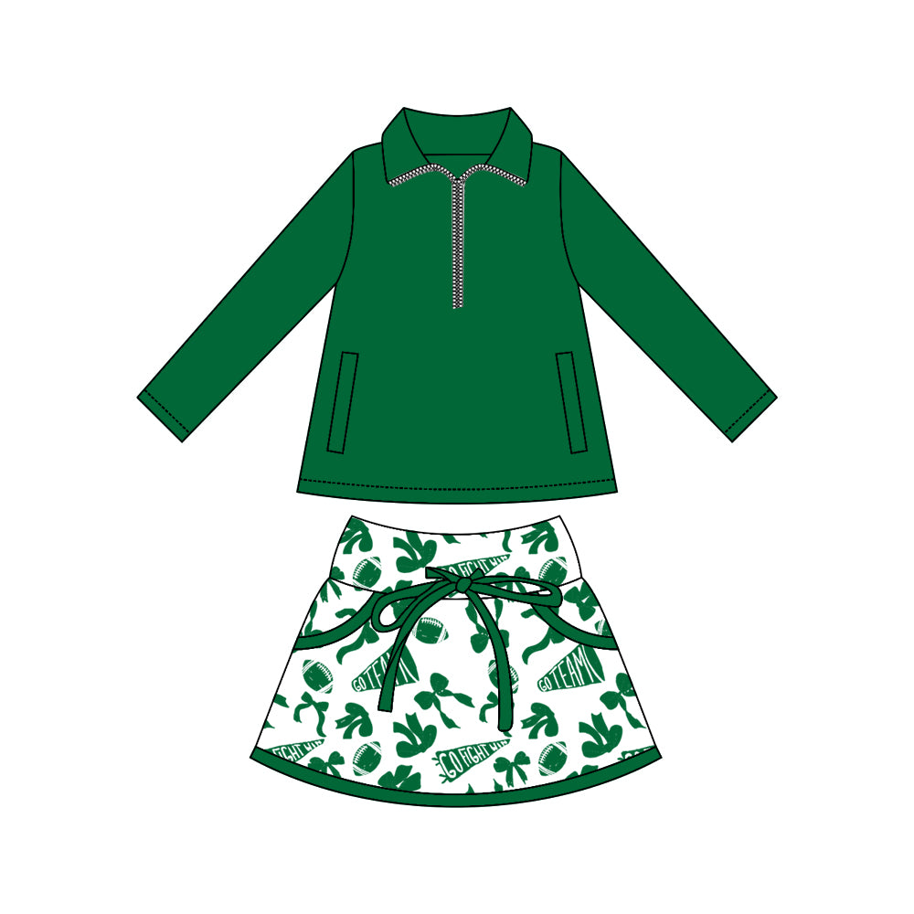 Custom style MOQ:3pcs baby girl clothes green LS half zip set