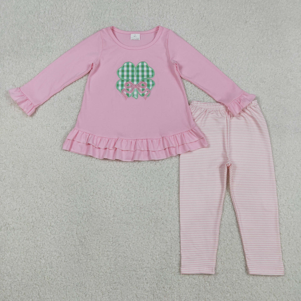 GLP2210 toddler girl clothes embroidery lucky girl St. Patrick set