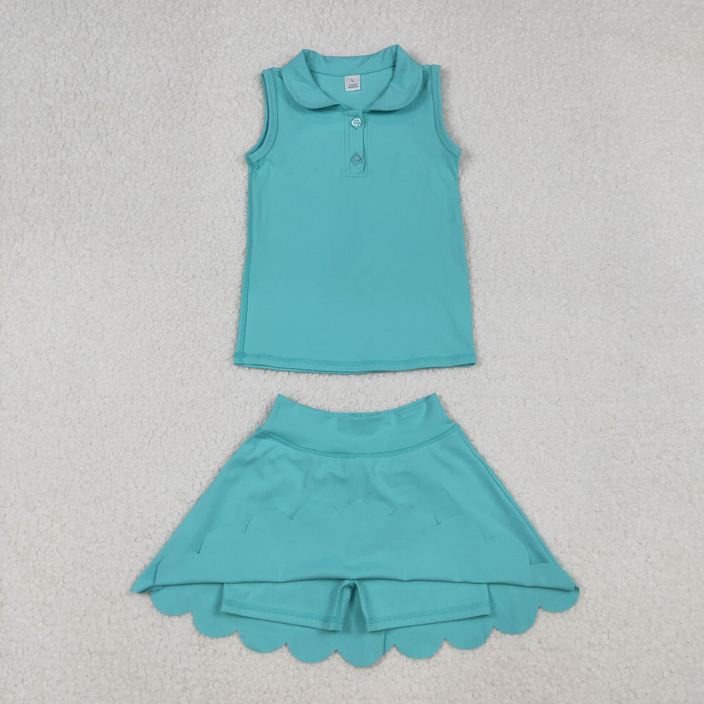 GSD2349 toddler girl clothes green girl summer set yoga clothes