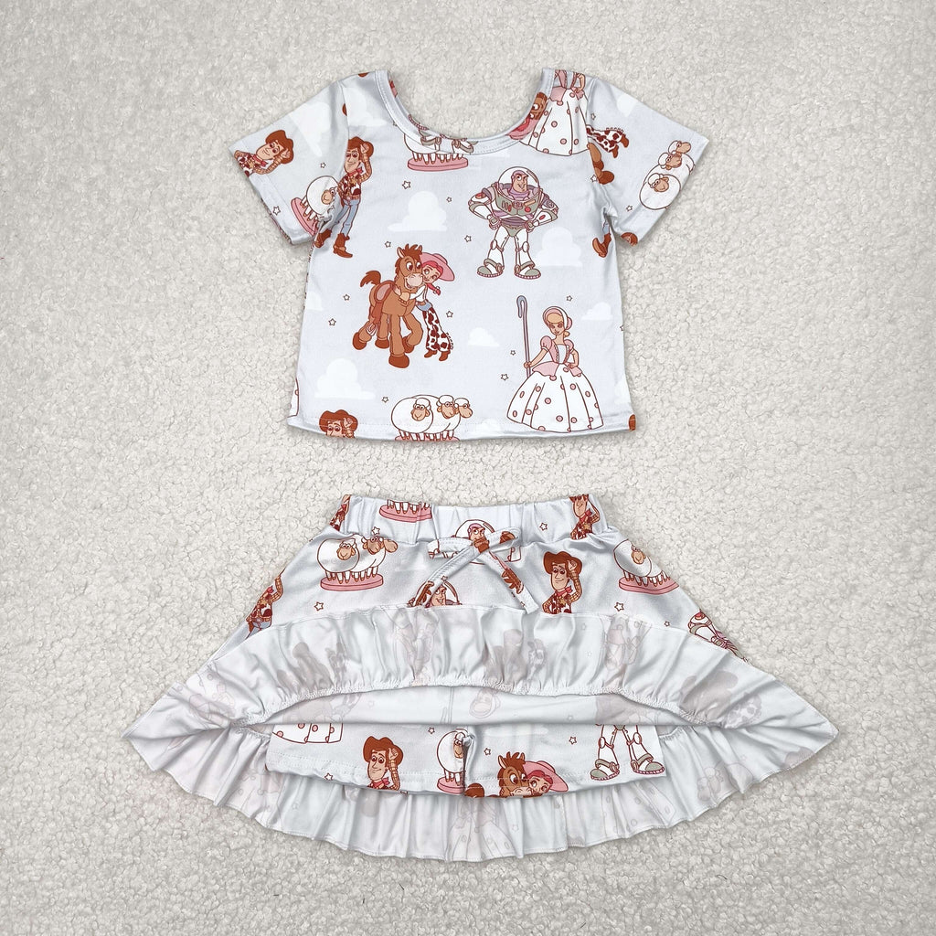 GSD2359 toddler girl clothes cartoon girl summer skirt set