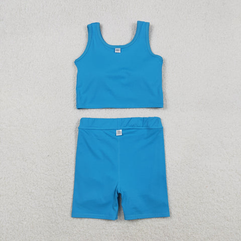 GSD2659 toddler girl clothes blue girl summer set yoga clothes
