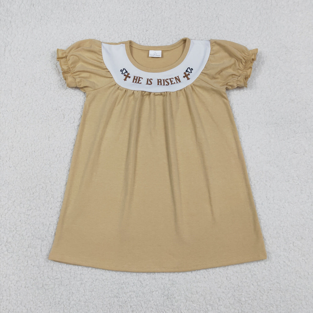 GSD3123 toddler girl clothes embroidery he is risen print girl summer dress