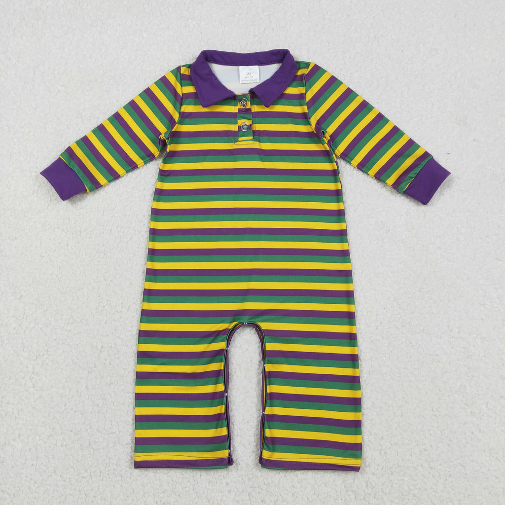LR2679 baby boy clothes stripe toddler boy mardi gras romper