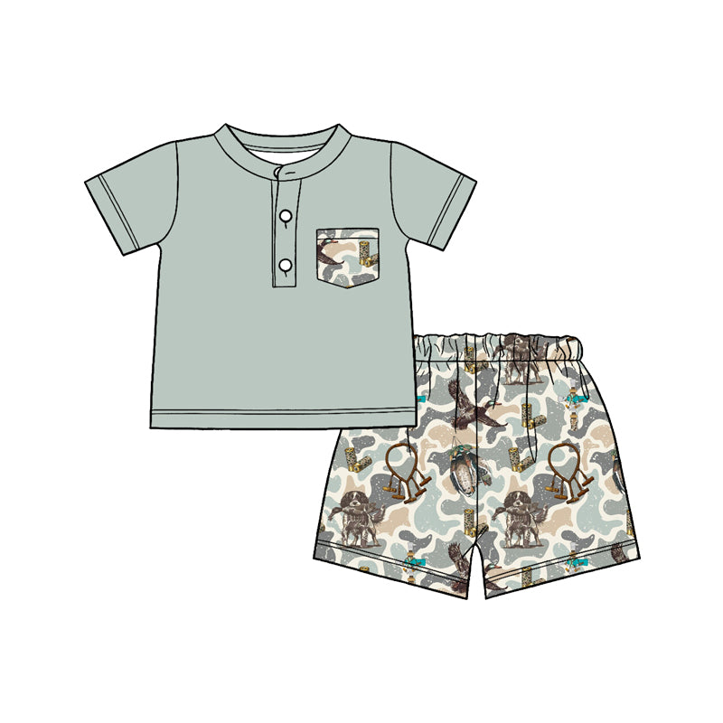 MOQ:5pcs BSSO1857 pre-order kids clothes mallard print boy summer outfit clothing set-2026.1.7