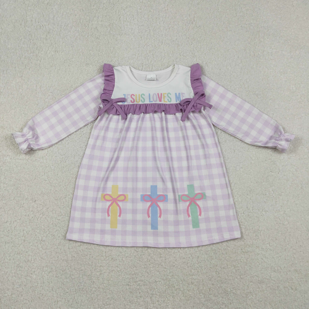 GLD1356 toddler girl clothes jesus loves me print girl easter dress