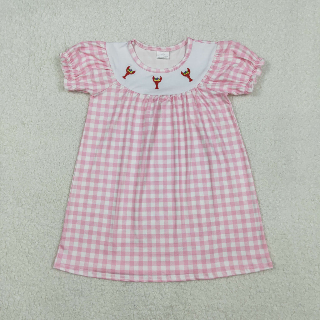 GSD2853 toddler girl clothes embroidery crayfish print girl mardi gras summer dress