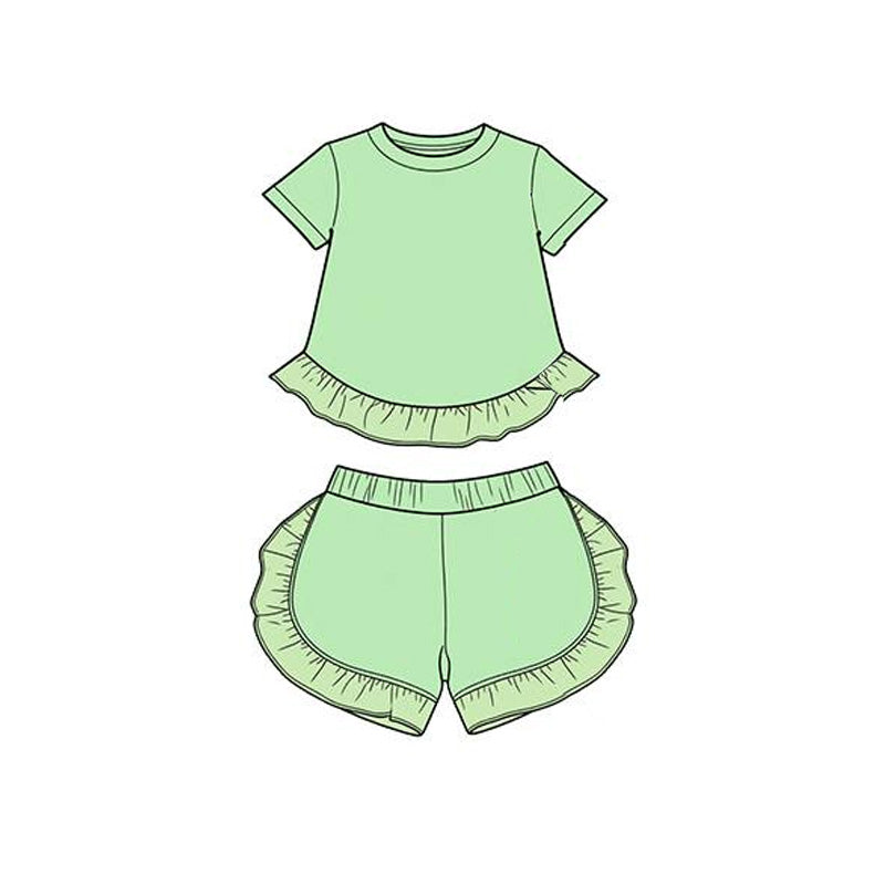 MOQ:5pcs GSSO3654 pre-order kids clothes green print girl summer outfit clothing set-2026.3.25
