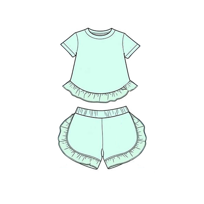 MOQ:5pcs GSSO3655 pre-order kids clothes blue print girl summer outfit clothing set-2026.3.25