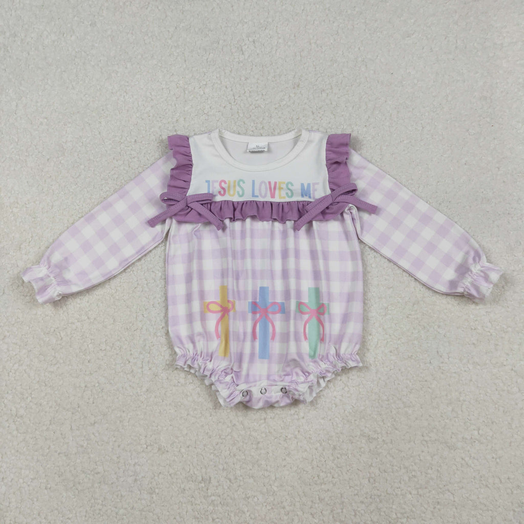 LR2740 baby girl clothes Jesus loves me girl easter bubble