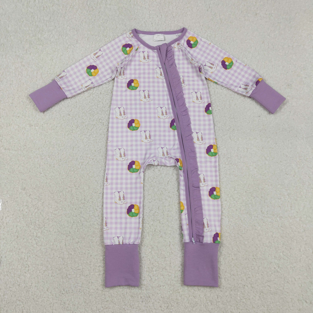LR2783 baby girl clothes donut print girl mardi gras winter romper