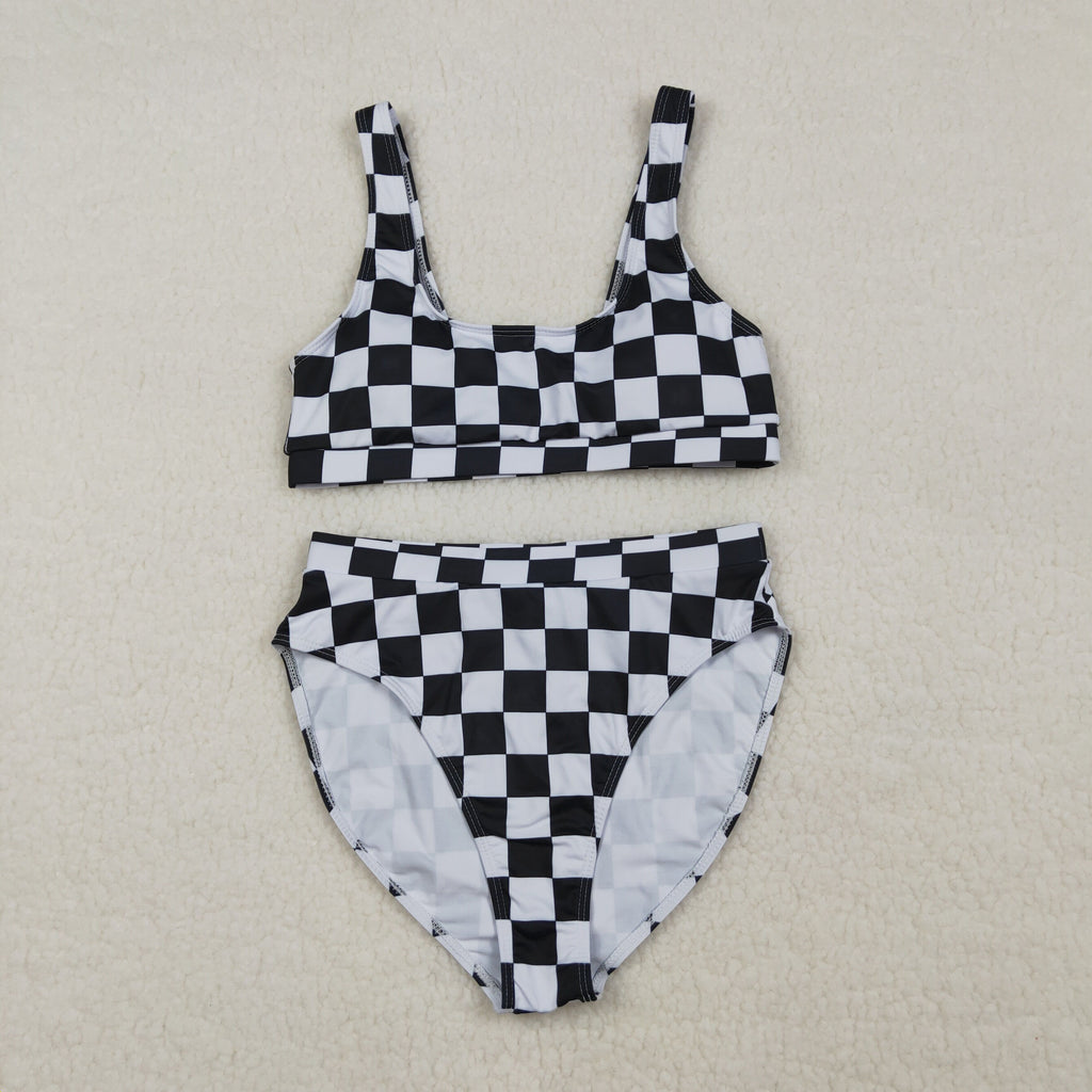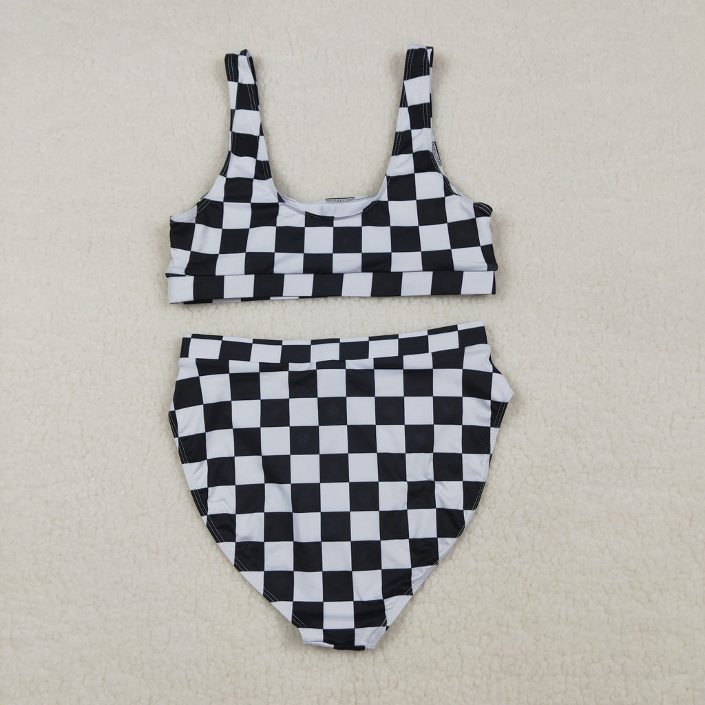 S0738 adult clothes Adult Mom black gingham print Summer Swimsuit