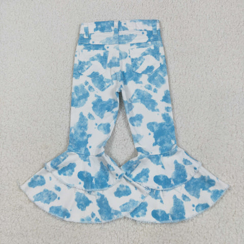 P0762 baby girl clothes light blue ink pattern girl bell bottoms pant jeans
