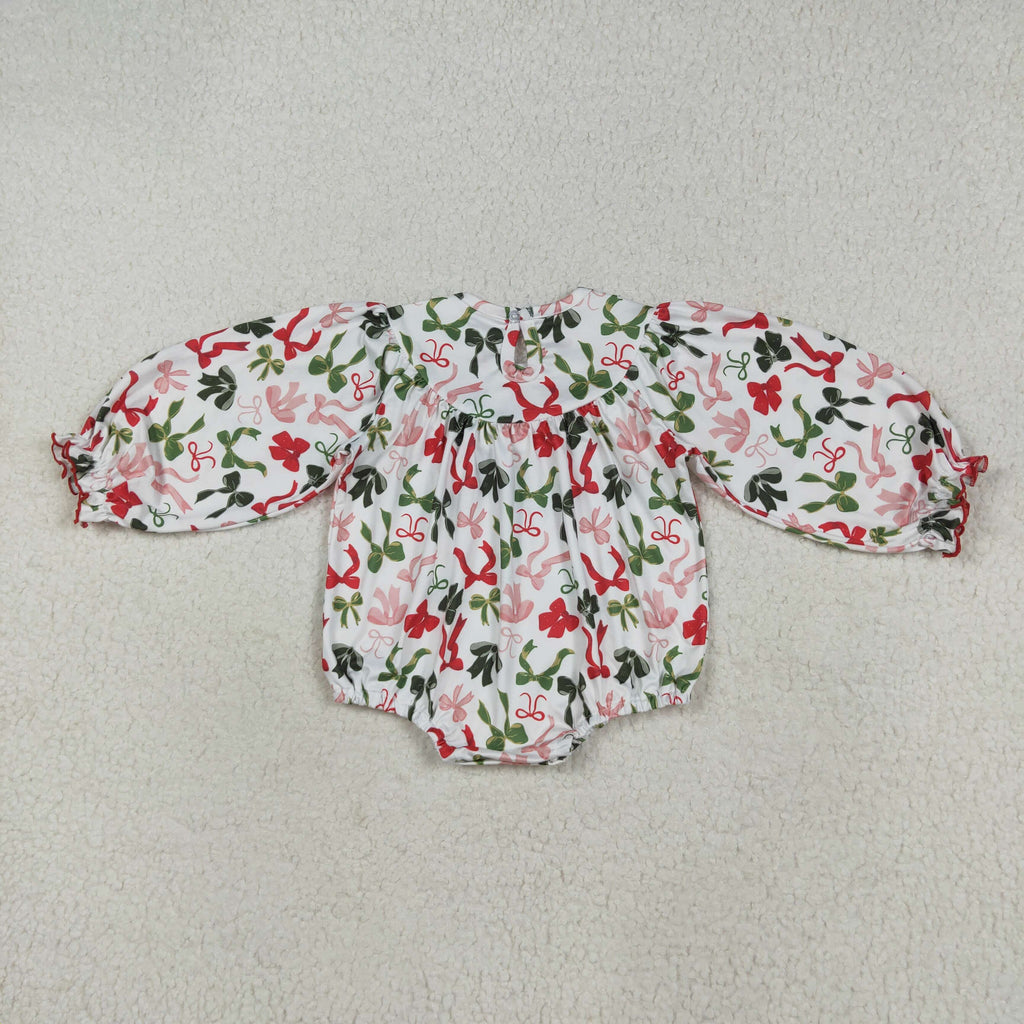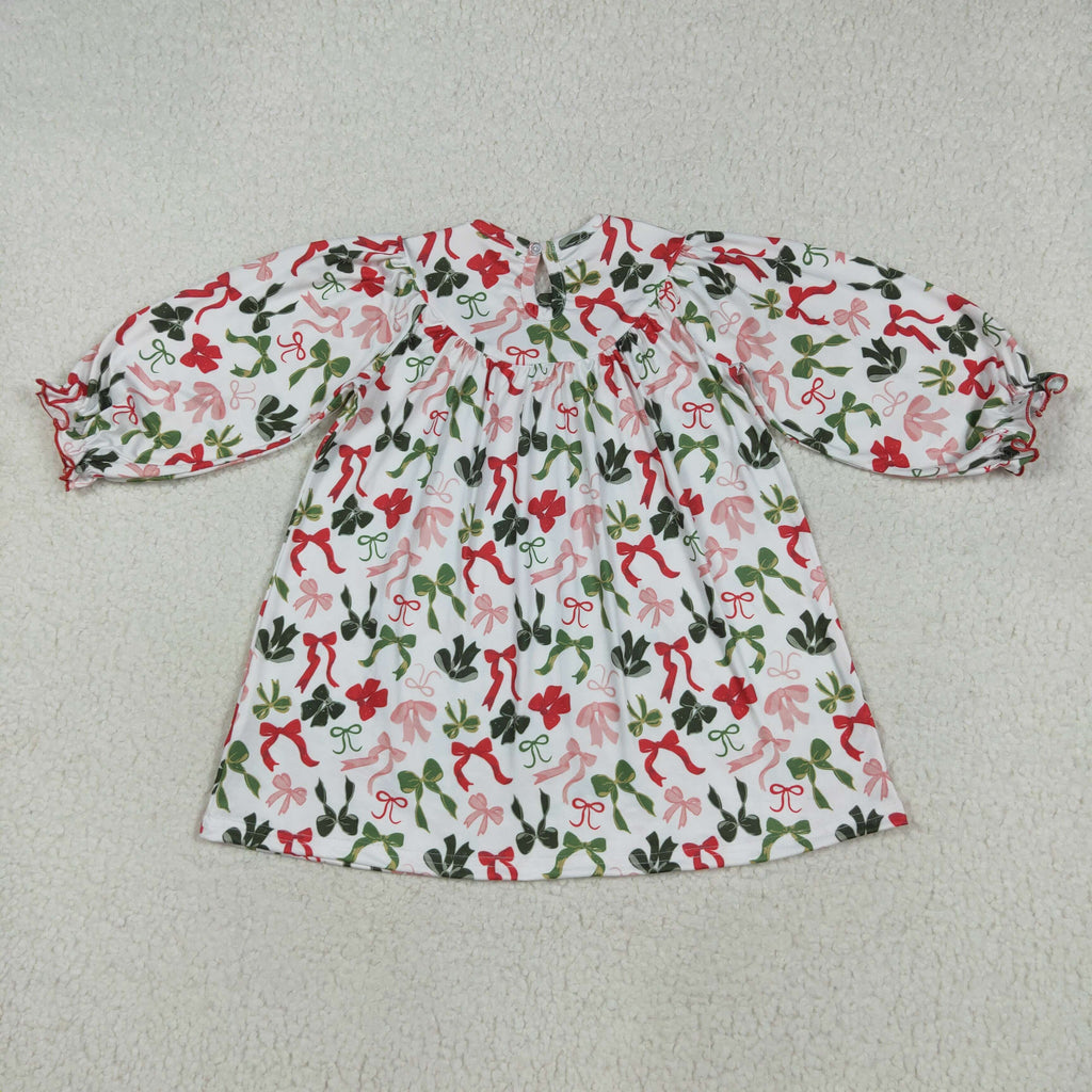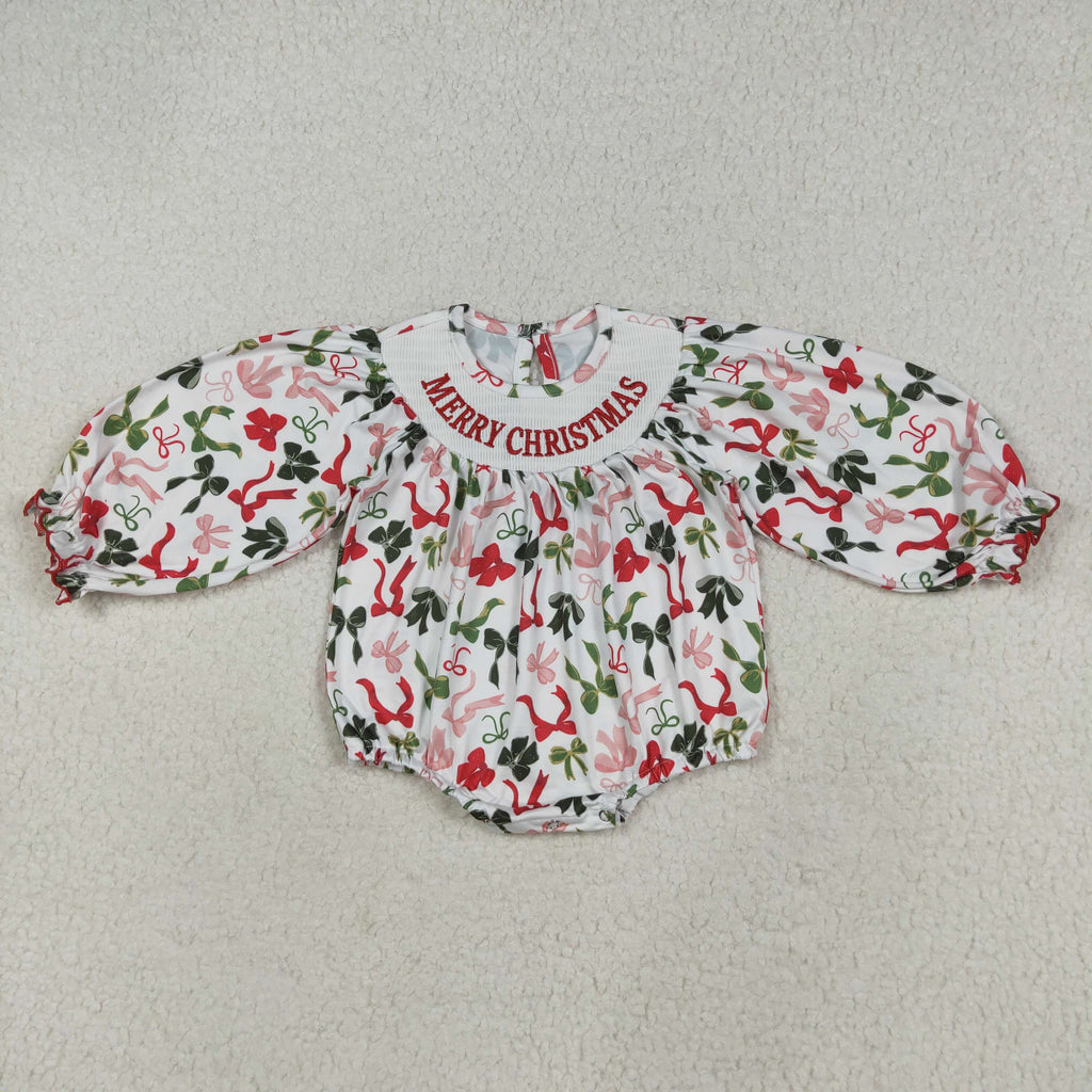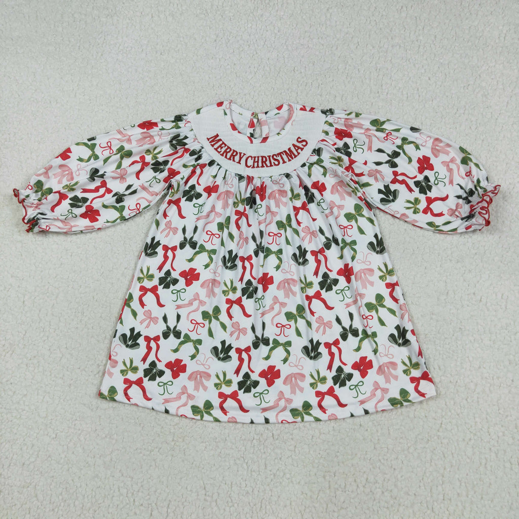 RTS kids clothes embroidery smocked bows kids christmas matching clothes winter set-2025.7.28