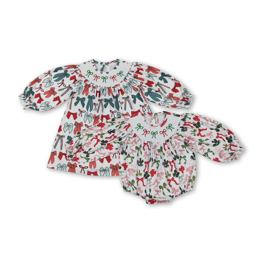 RTS kids matching clothing embroidered bow print clothing girl christmas winter clothing-2025.9.5