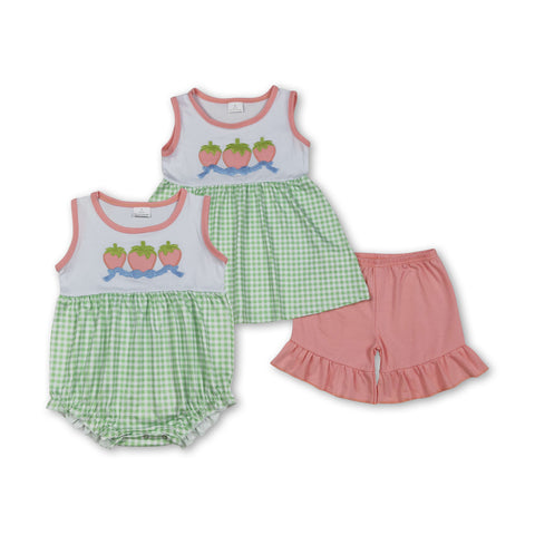RTS kids matching clothing embroidery strawberry print clothing girl summer clothing-2025.1.9