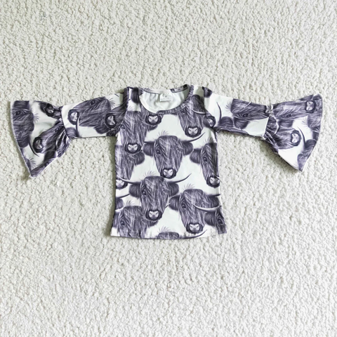 RTS toddler clothes matching clothing baby highland cow print top girls winter t-shirt-2025.10.9