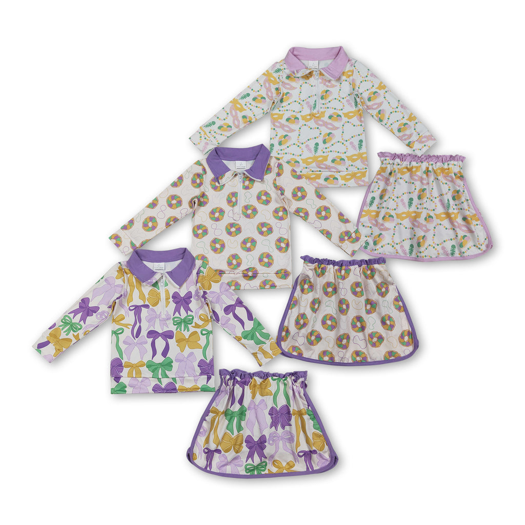RTS toddler clothes matching clothing king cakes bows print kids mardi gras clothing-2025.12.17